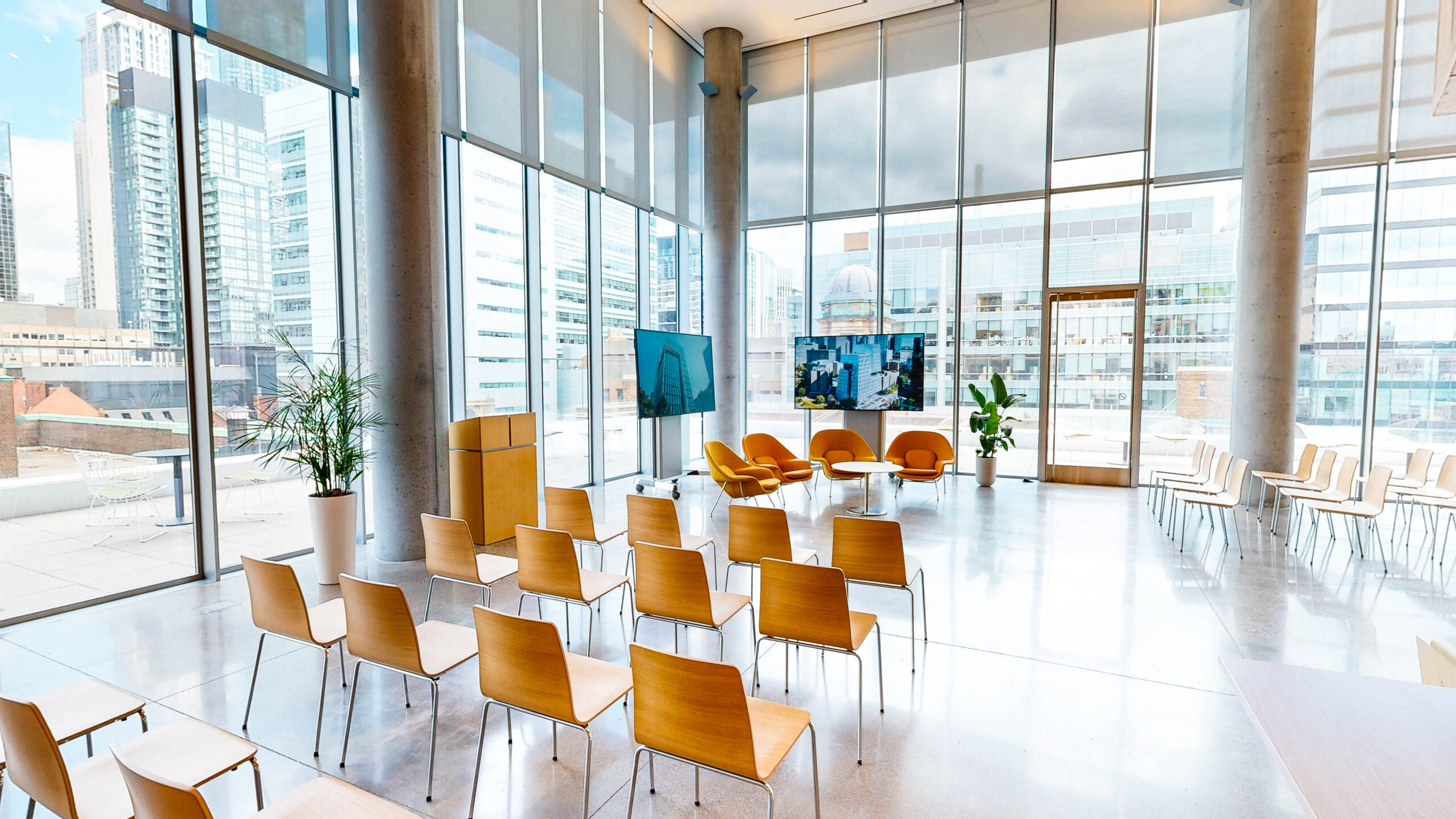 • Multi-functional spaces with expansive views of the city.